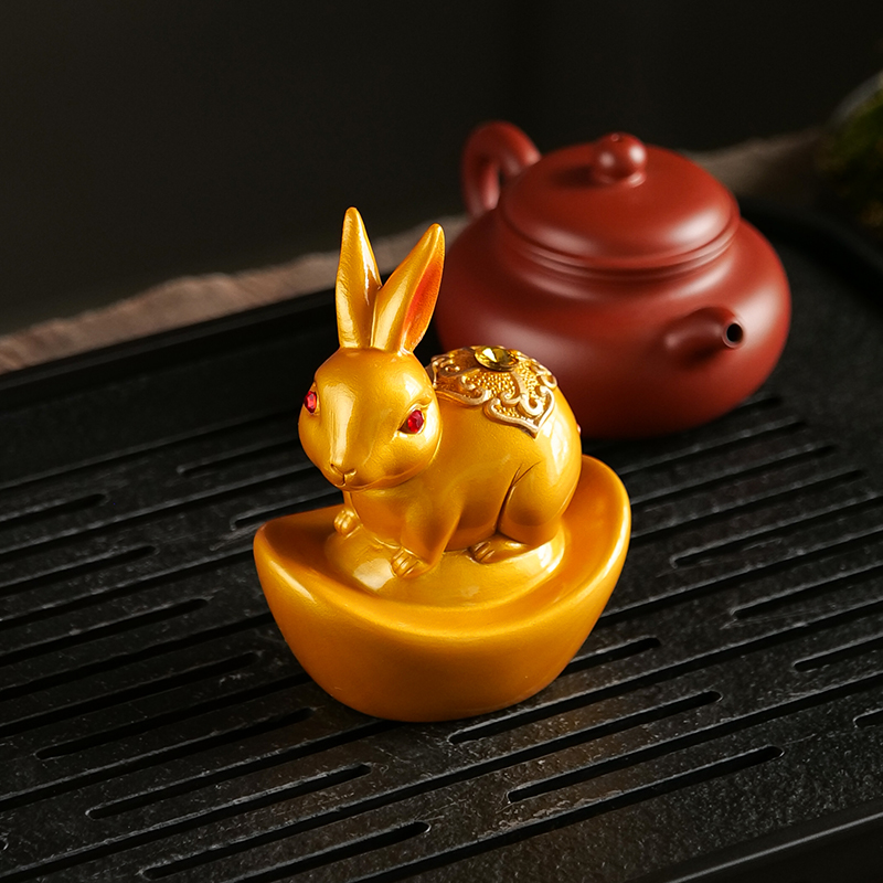 豪跃变色茶宠兔子摆件精品生肖兔茶宠物招财茶玩茶桌茶台茶具配件