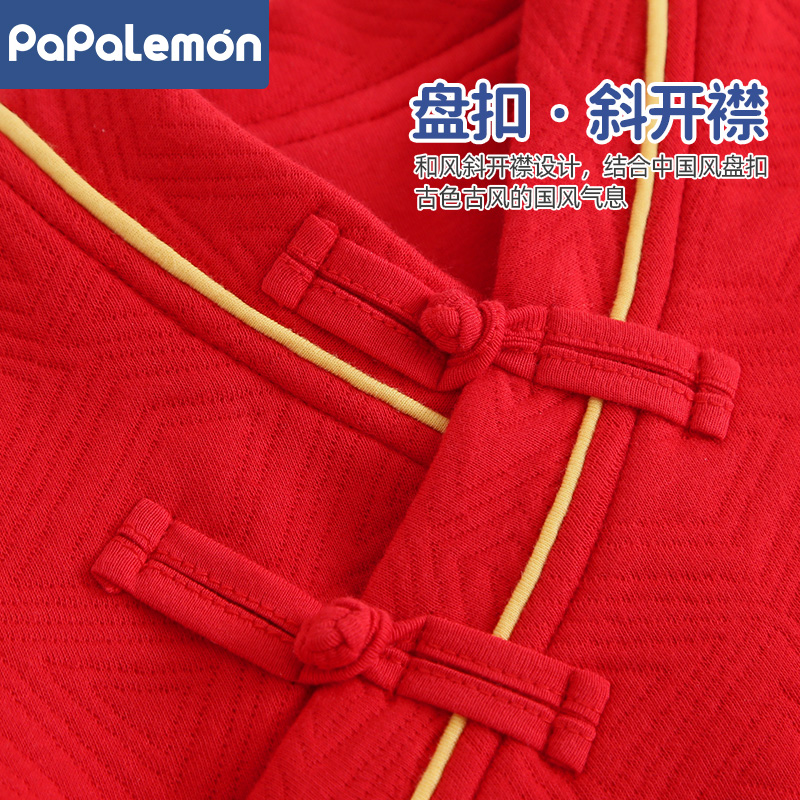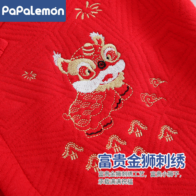 婴儿连体衣新年宝宝夹棉哈衣满月红色喜庆新生儿百日宴周岁拜年服