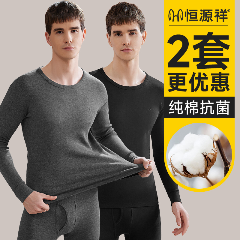 全棉薄款 恒源祥男士 纯棉毛衫 套装 打底保暖内衣女内穿秋冬 秋衣秋裤