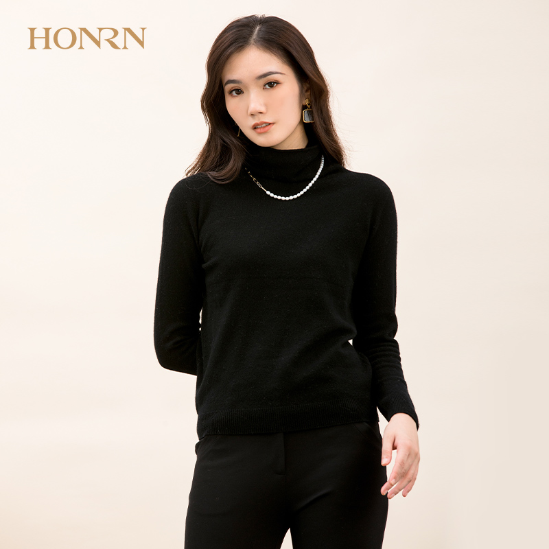 羊毛针织高领打底毛衣女秋冬内搭外穿套头衫 长袖 红人修身 HONRN