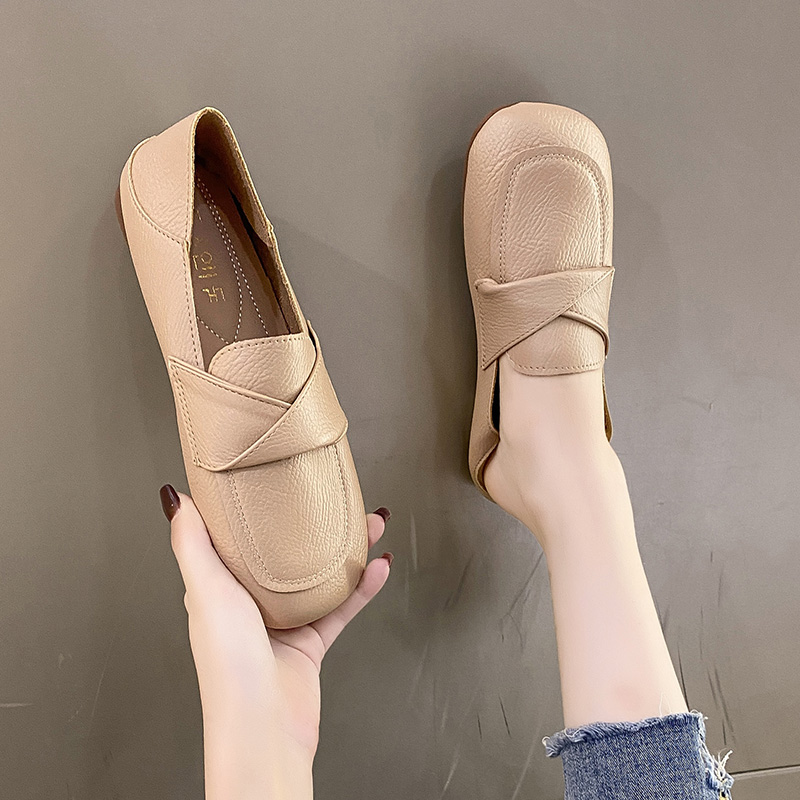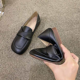 方头休闲百搭上班工作鞋 开车单鞋 女2025夏秋新款 一脚蹬软底豆豆鞋