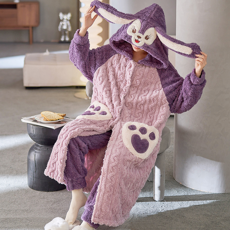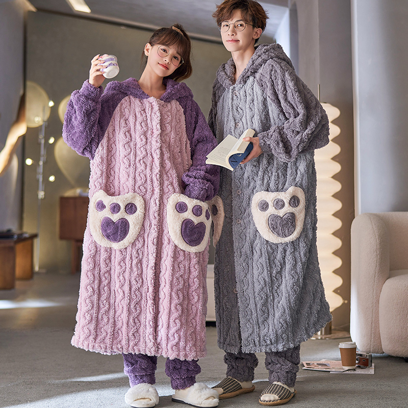 加厚加绒男女睡袍家居服套装 情侣睡衣冬季 珊瑚绒可爱法兰绒秋冬款
