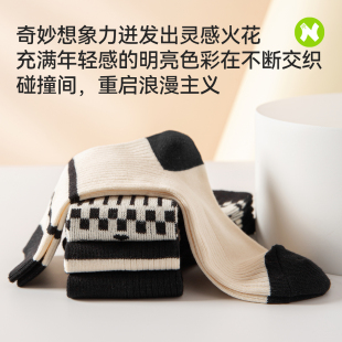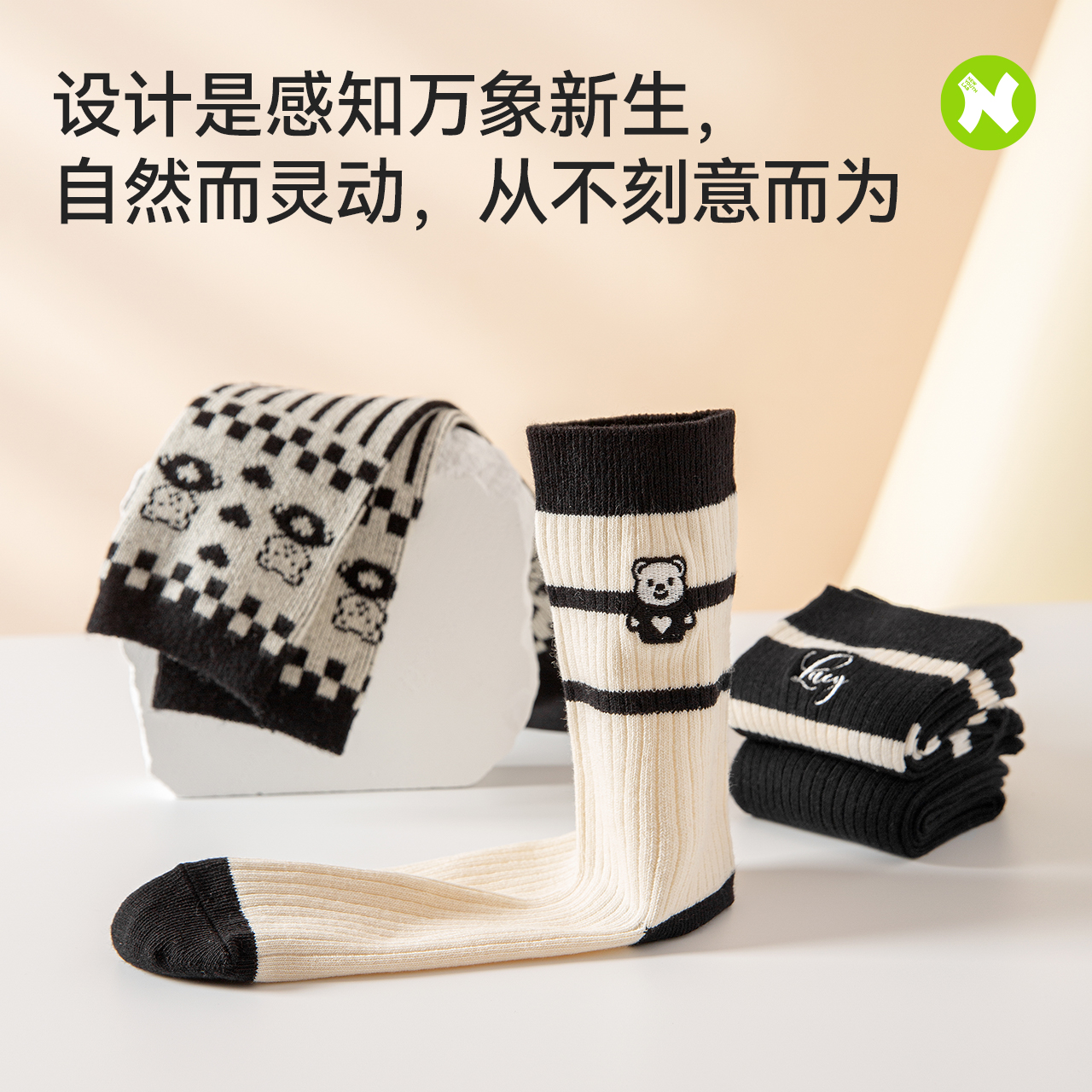 耐尔袜子女春秋黑白色小熊条纹中筒袜棉新款 ins潮刺绣堆堆袜长袜