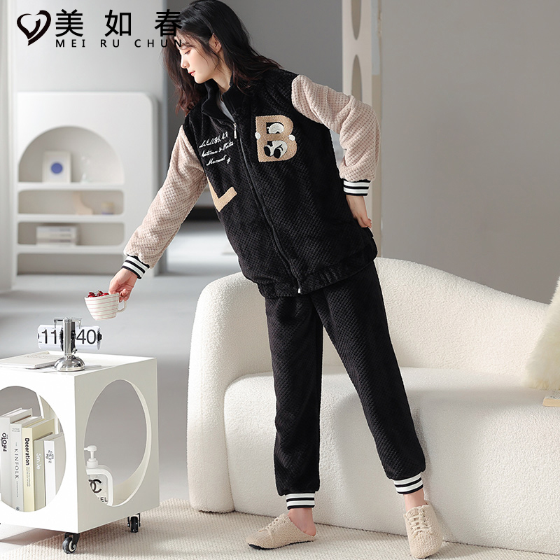 维密宅度假系列奶舒绒睡衣轻柔抗静电保暖家居服套装 女可外穿