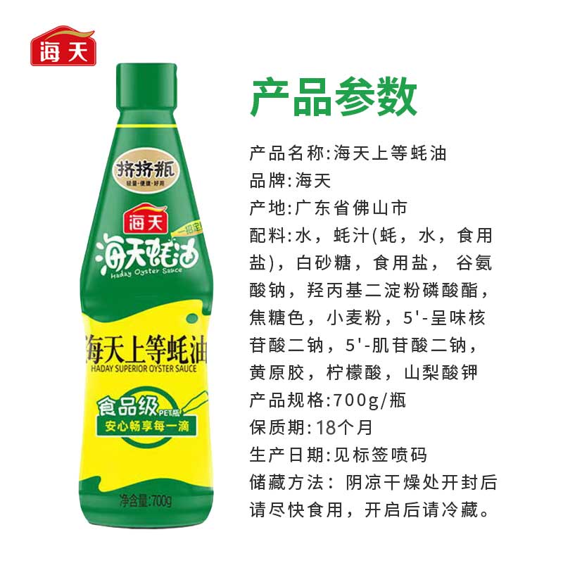 海天蚝油挤挤装 上等耗油700g瓶家用厨房炒菜商用耗汁烧烤提鲜调味