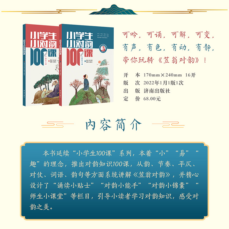 朱文君小学生小对韵100课上下2册小古文100课姐妹篇非小巴掌散文一百课篇散文读本教辅经典 听美文语音 读物小学生课外阅读书籍扫码