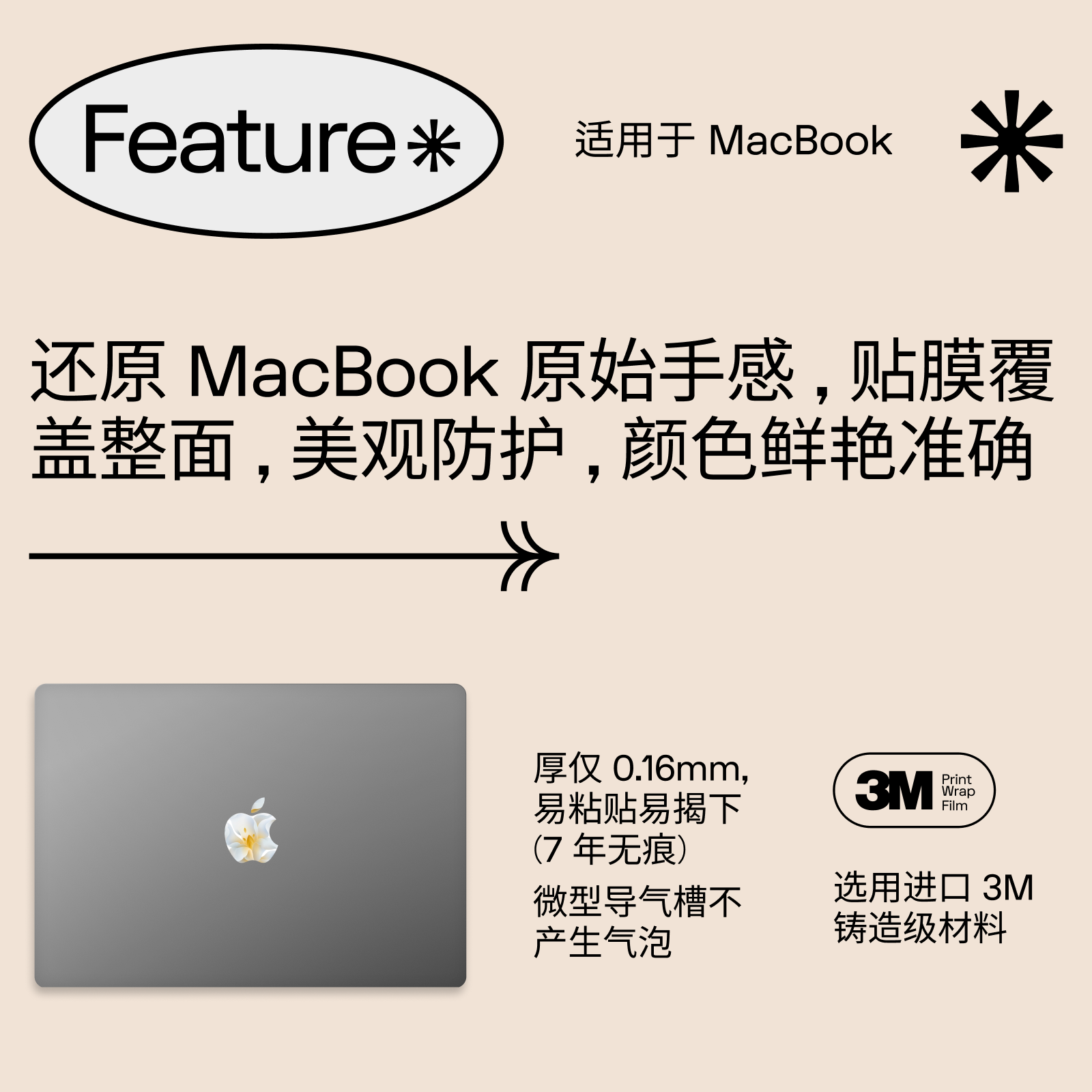 logo贴 ipad 3M铸造级材质背胶 Logo贴膜上海静安苹果店logo贴纸花见花开一道来 SkinAT适用于苹果MacBook