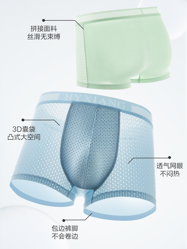 内裤 衩四角短裤 男生夏季 冰丝凉感网眼透气平角裤 头 薄款 恒源祥男士