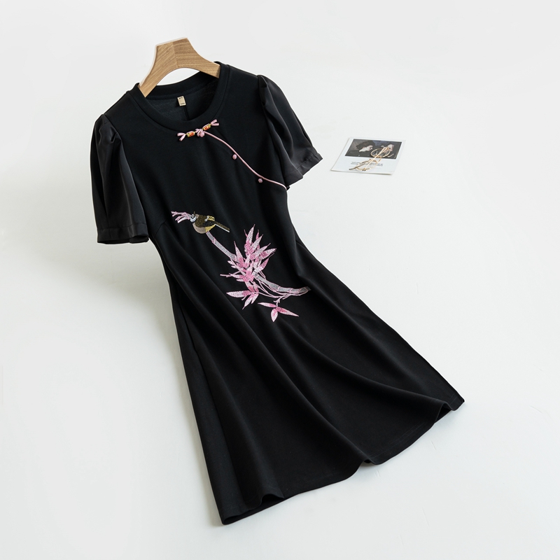 国风短袖 乔妮塔品牌女装 重工刺绣新中式 新款 连衣裙中长裙 2025夏季