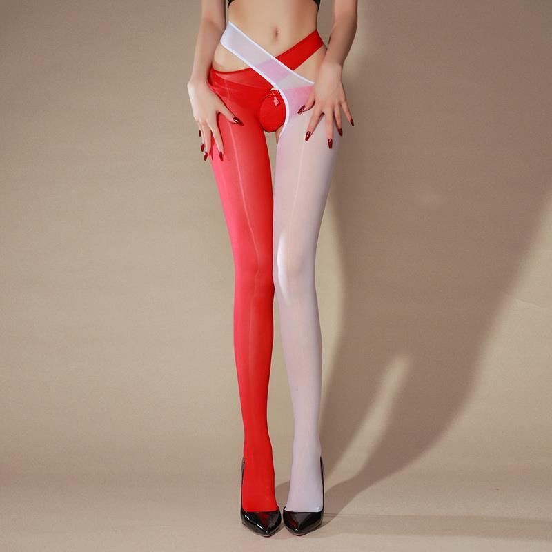 黑白双色交叉款 袜超薄马油袜子 油光丝袜女单只可替换撞色透明连裤