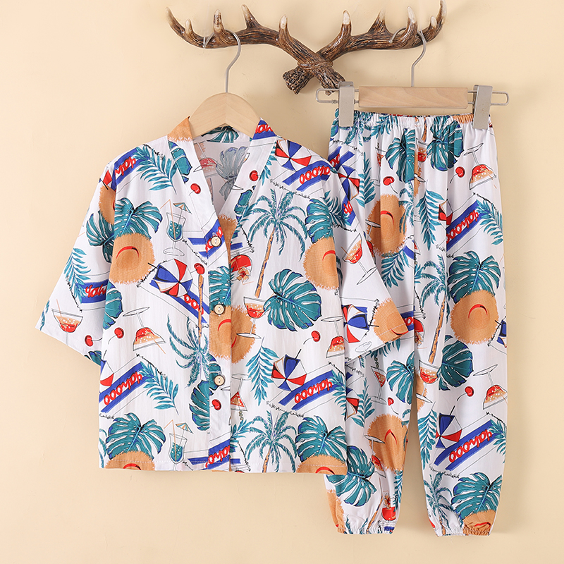 夏季 儿童女童绵绸薄款 男孩宝宝空调家居服 七分袖 男童棉绸睡衣套装