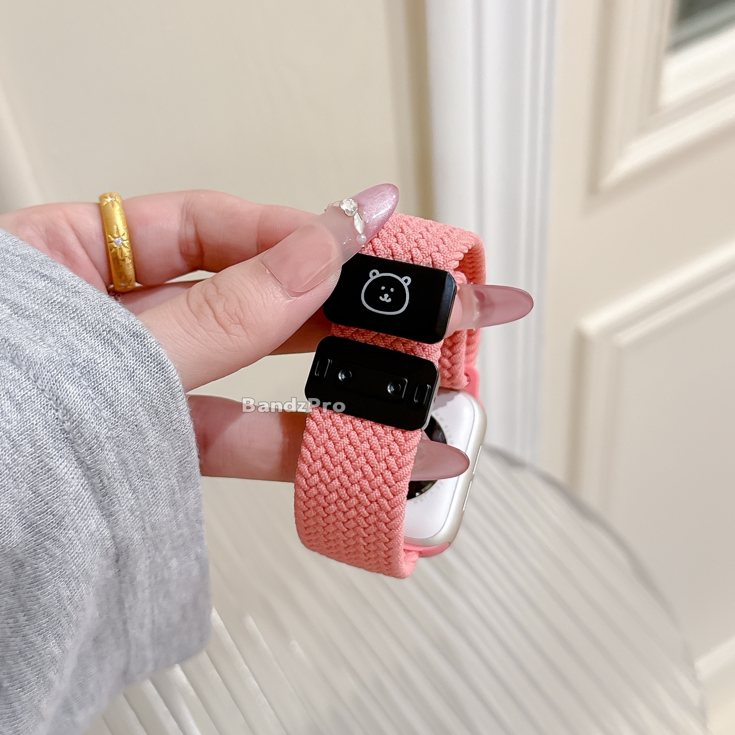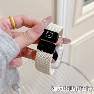 可爱创意 7透气SE小熊腕带男ultra女款 适用iwatchS11表带苹果手表10自嘲熊尼龙编织磁吸applewatchS9