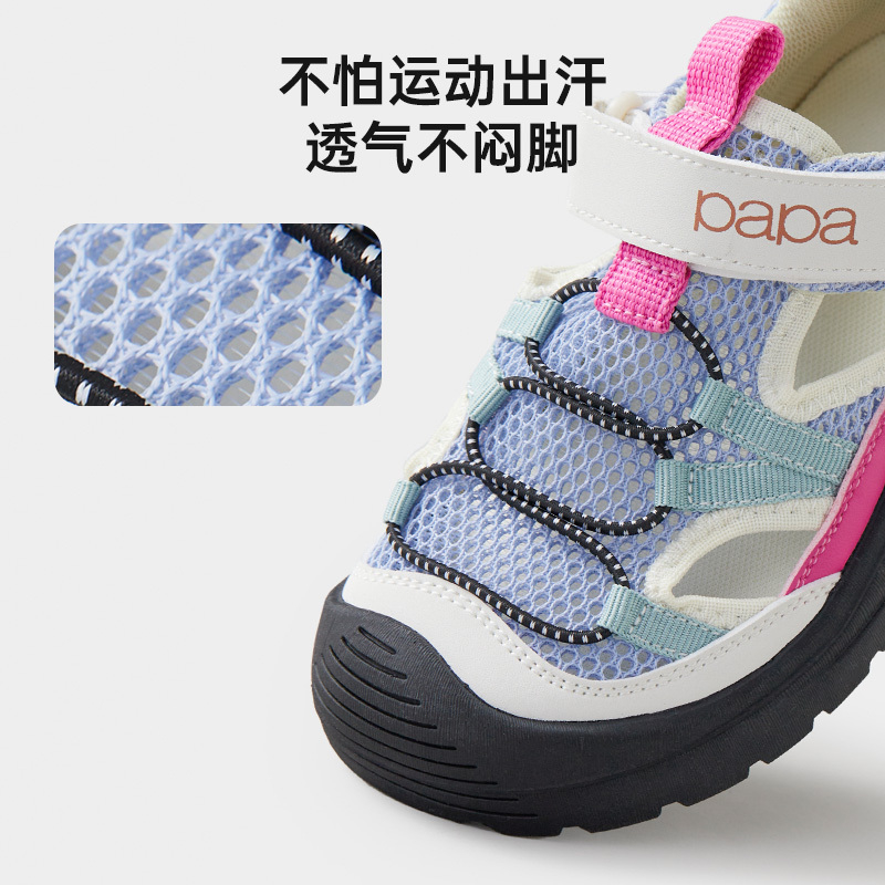男女童透气镂空网面防滑休闲运动凉鞋 papa爬爬夏季 儿童鞋