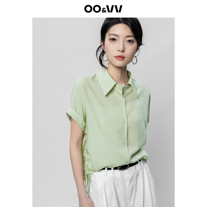 开衫 oo&vv天丝衬衫 绑带设计感休闲别致修身 薄款 上衣 女2025夏季