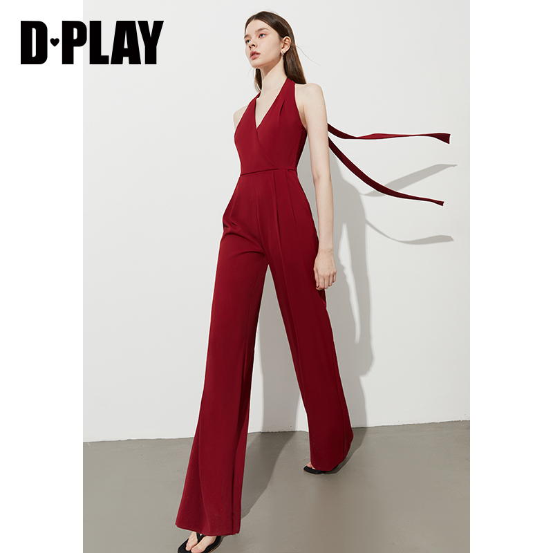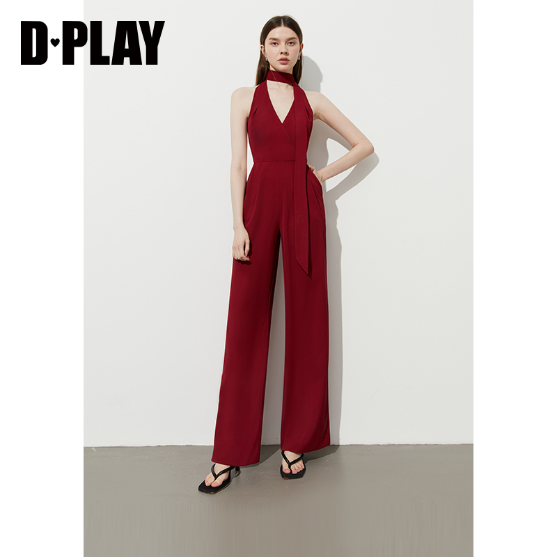 新款 红色连体裤 女气质法式 DPLAY 子长裤 2025年夏季 裤 度假系列
