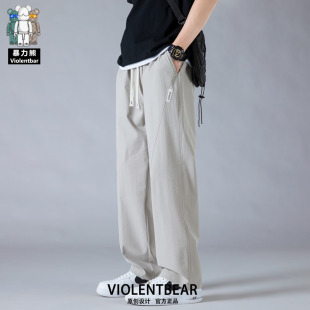 夏季 百搭潮流户外运动情侣裤 男装 时尚 休闲裤 暴力熊冰丝透气直筒裤
