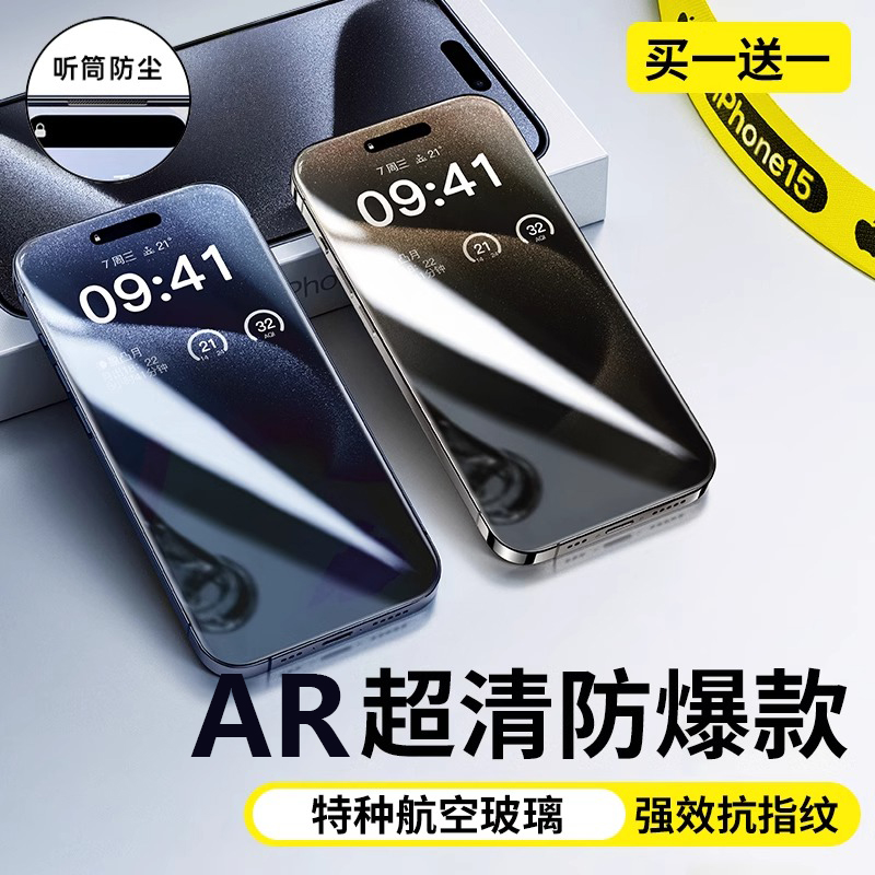 15ProMax手机膜14手机贴膜13防指纹12ip高清X 适用苹果17Pro钢化膜iPhone16 Xs防窥xr全屏Plus11 航空防爆