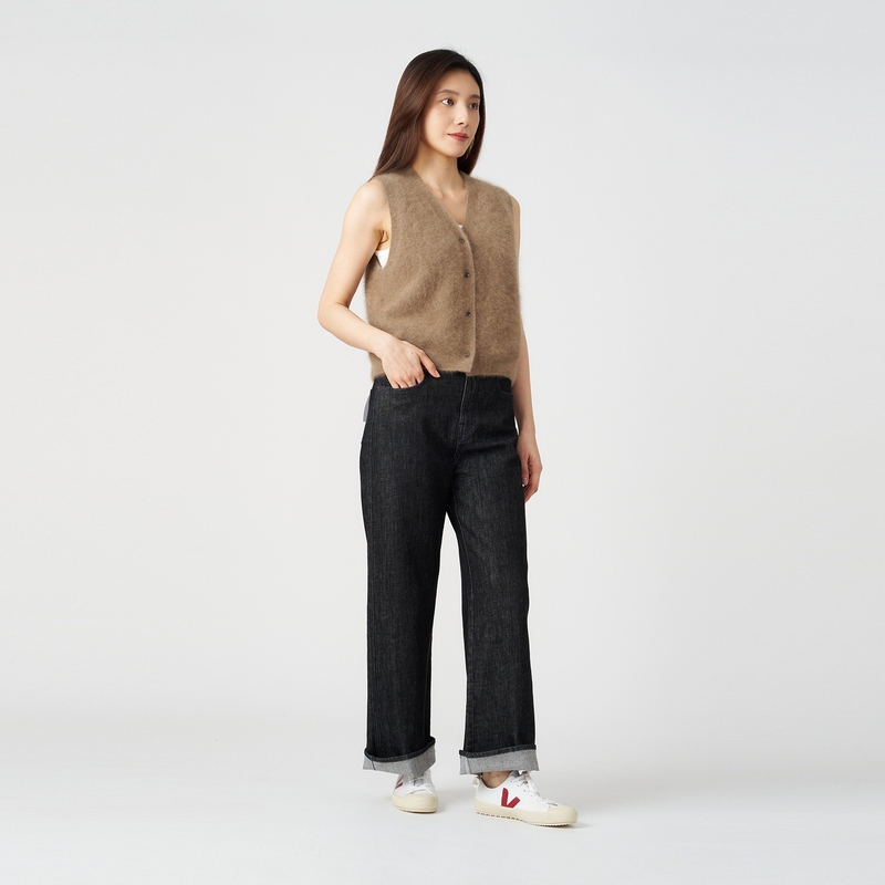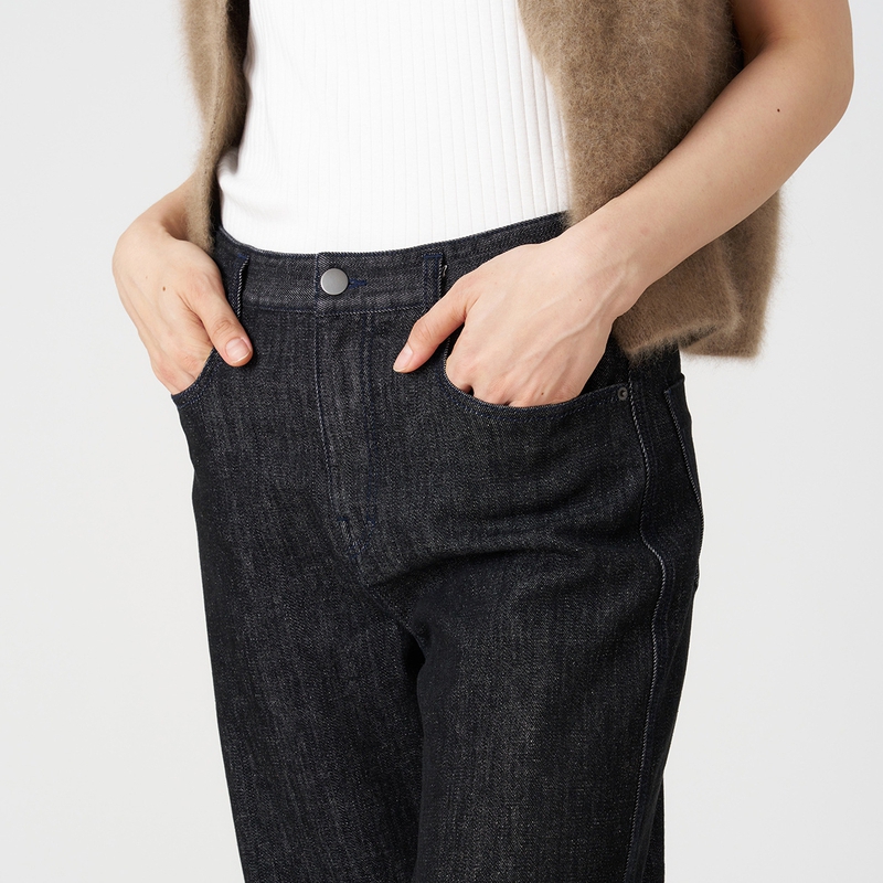 女士休闲气质环保棉黑色牛仔吊脚翻边A型裤 秋季 klee 素然klee