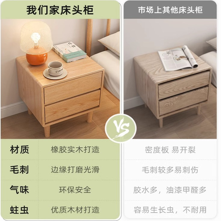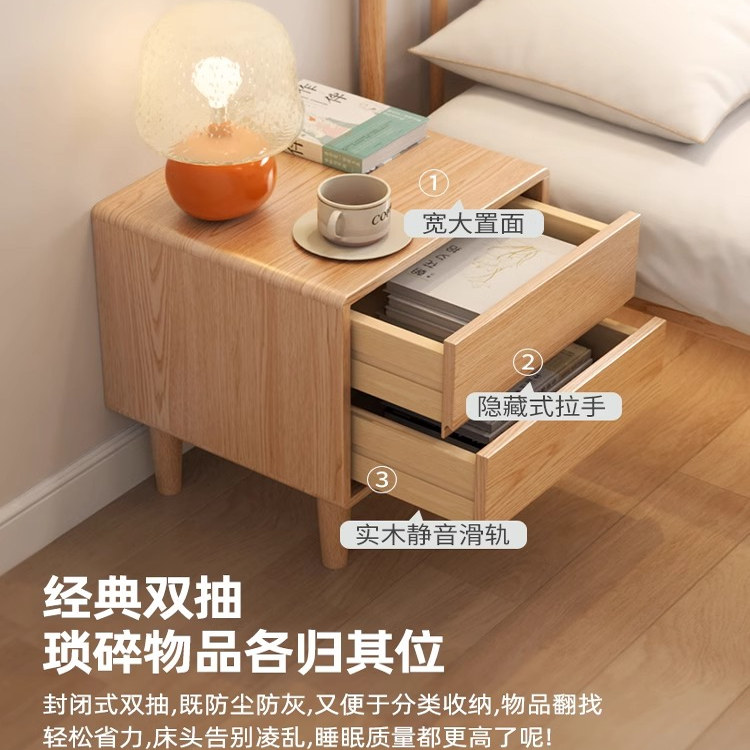 藤壳实木床头柜家用卧室简约现代储物柜原木床头收纳柜床边柜