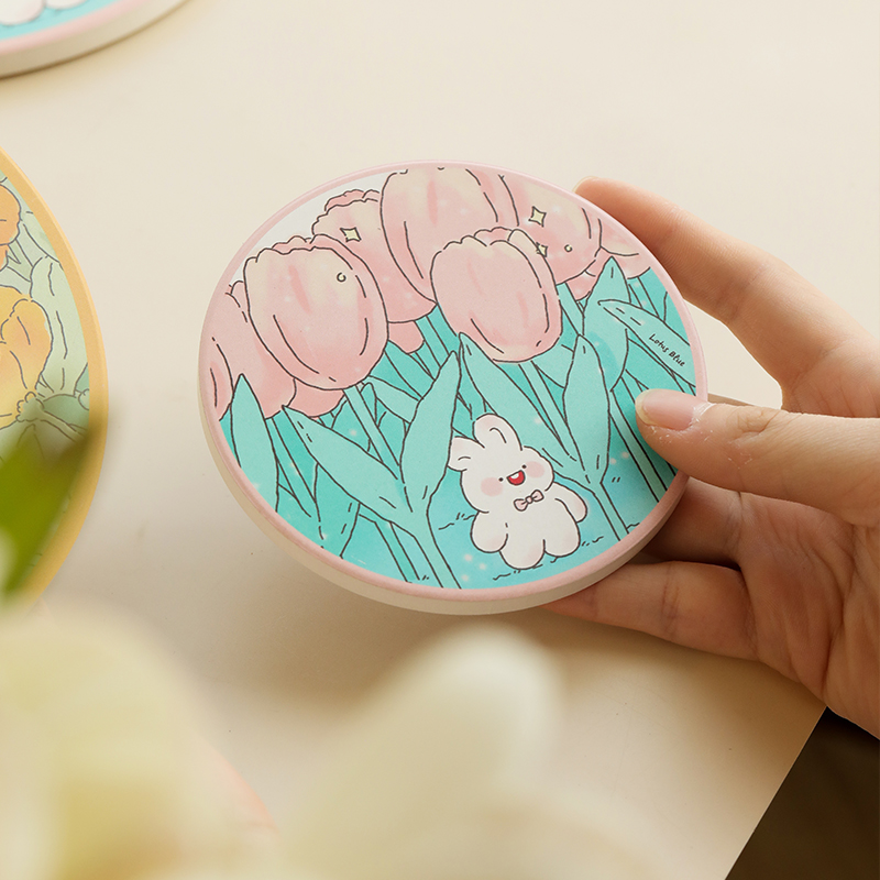 蓝莲花陶瓷杯垫防滑隔热垫茉茉兔办公室热水杯垫玻璃杯子卡通防烫