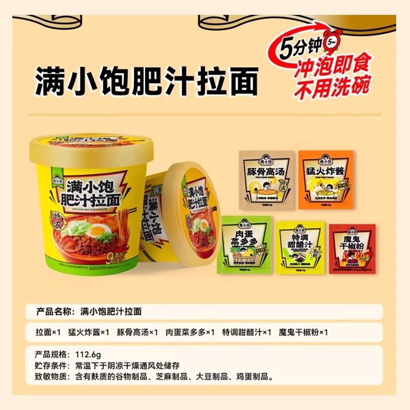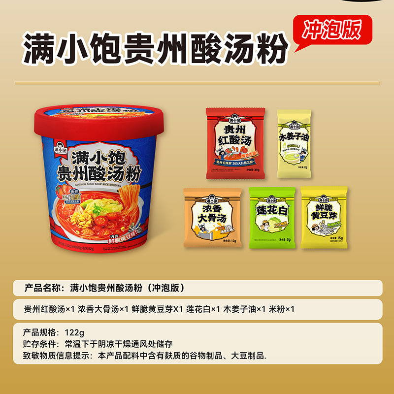 满小饱肥汁米线桶装 冲泡即食米粉酸辣粉丝方便面泡面速食拉面宿舍