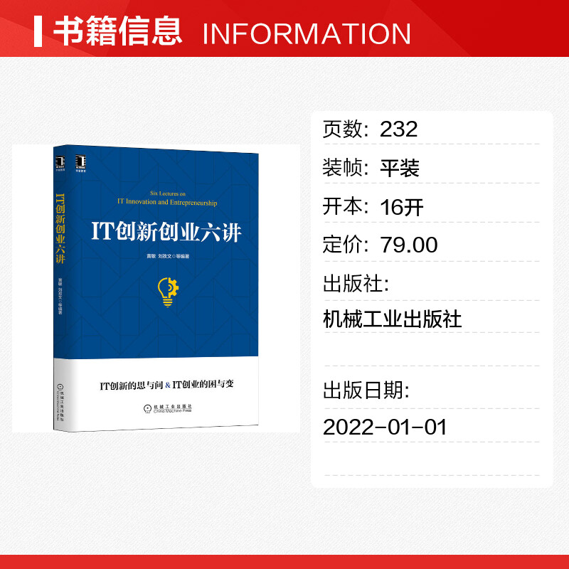 图书籍 社 编 经管 励志 新 等 计算机软件工程 机械工业出版 IT创新创业六讲 新华书店正版 黄敏