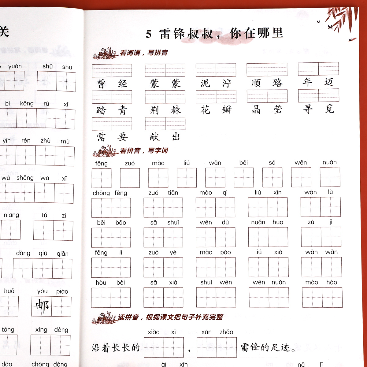 二年级下册看拼音写词语生字注音部编人教版 下学期练习册字词训练 小学生2下语文教材同步专项训练组词一日一练