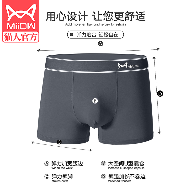男纯棉宽松平角裤 加大加肥四角短裤 男士 透气大码 夏季 猫人肥佬内裤