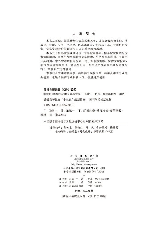 社9787030466488 陈燕;胡希俊胡虹副;科学出版 医学信息检索与利用 第二版