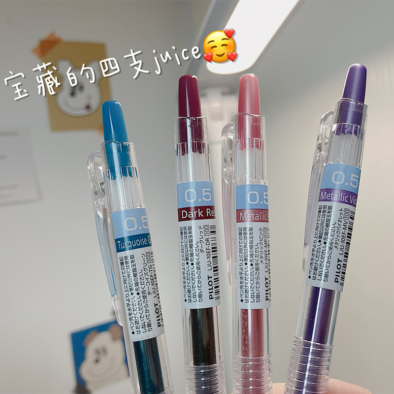 日本piolt百乐juice果汁笔颜色勃艮第红松石绿中性笔做笔记专用彩笔按动水笔高颜值深红色笔