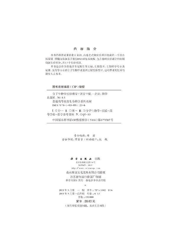 社9787030571236 规划教材生命科学系列教材重组DNA基本流程实验指导教程书籍科学出版 分子生物学实验指导 十三五