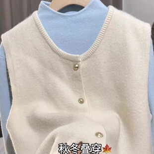 单排扣针织马甲内搭打底衫 新款 女2025秋冬季 小香风甜美温柔针织衫