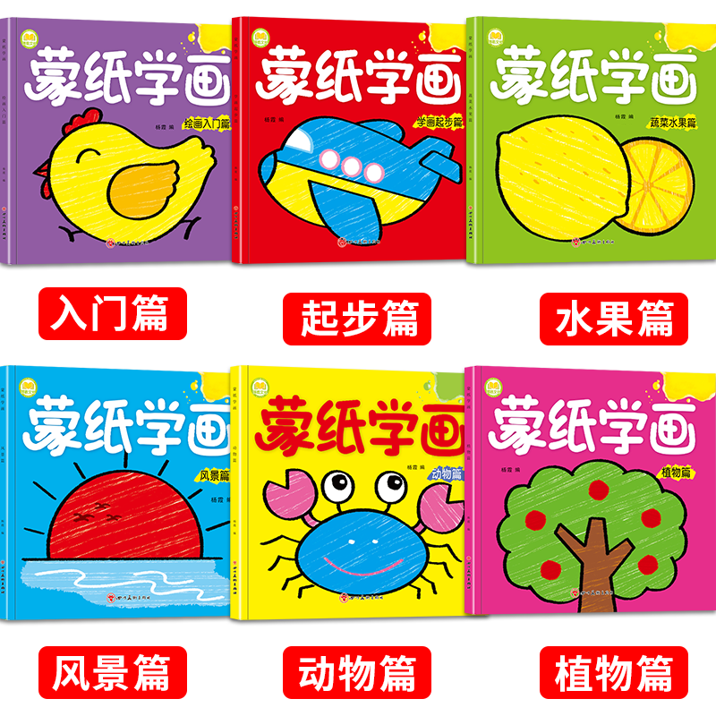 6岁儿童学画涂色本幼儿园涂鸦填色本教材玩具男女孩绘画教材宝宝画画启蒙图书早教益智力游戏书籍画册套装 全套6册蒙纸学画2