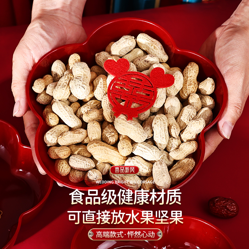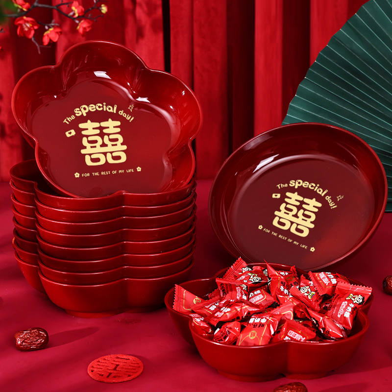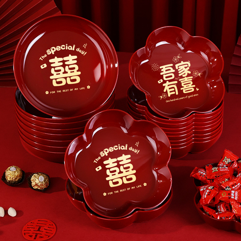结婚果盘专用红色盘子茶几喜糖托盘喜盘婚房布置装 饰婚庆用品大全