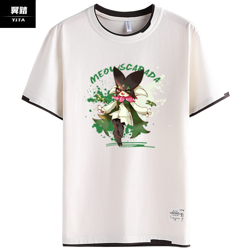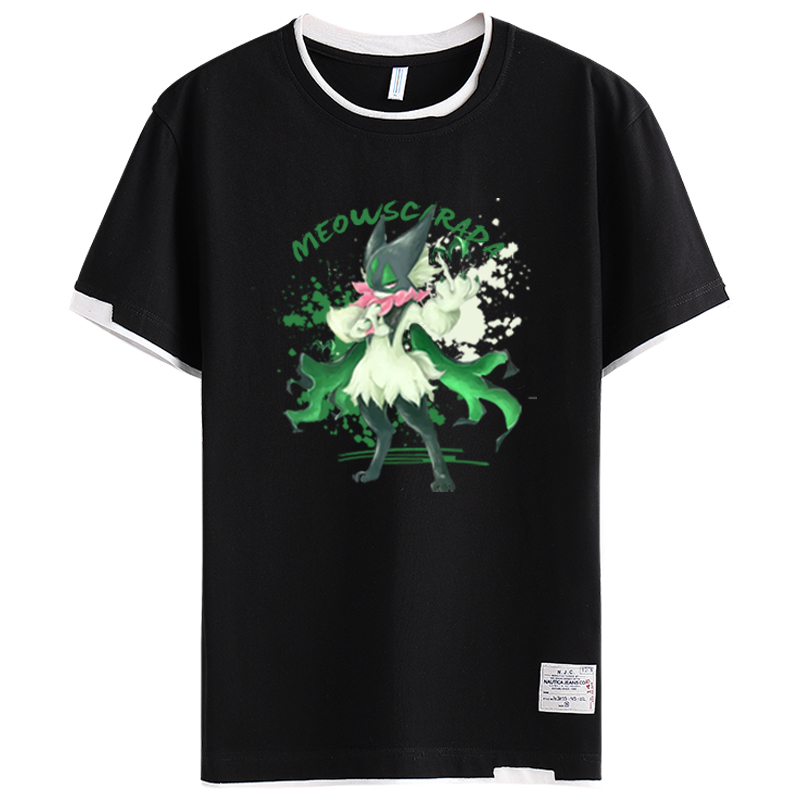 男女学生假两件半袖 魔幻假面喵周边联名精灵宝可梦拼接短袖 T恤衫