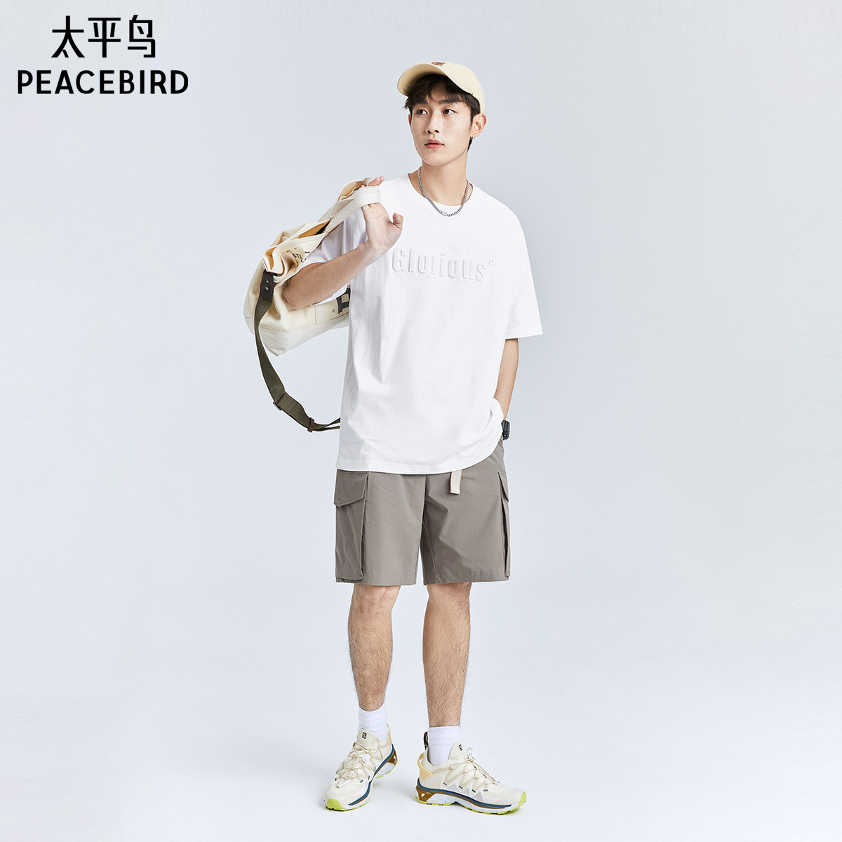 重磅 立体印花夏新款 太平鸟男装 T恤男女同款 纯色情侣体恤 短袖