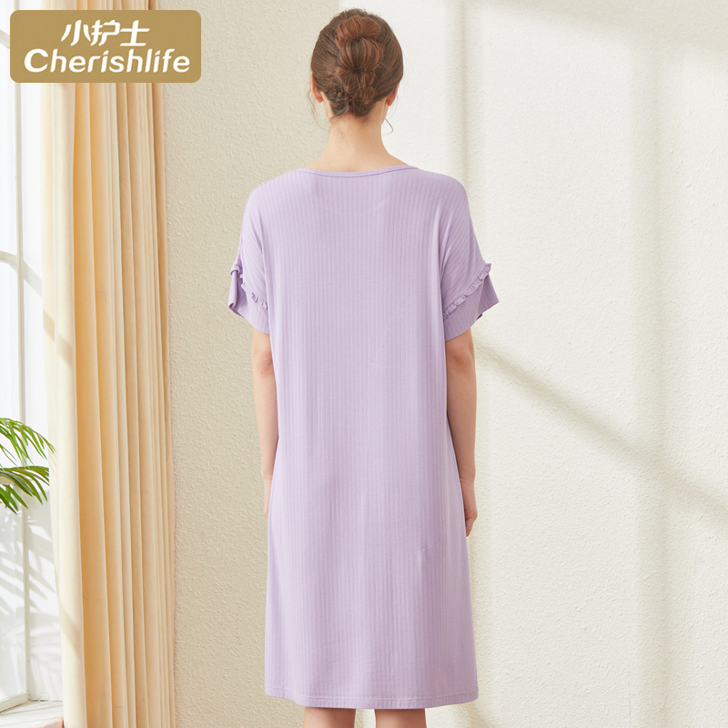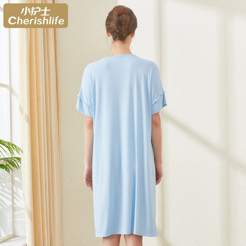 中裙子落肩连衣裙 家居服睡衣大码 小护士睡裙女夏薄款 休闲外穿短袖