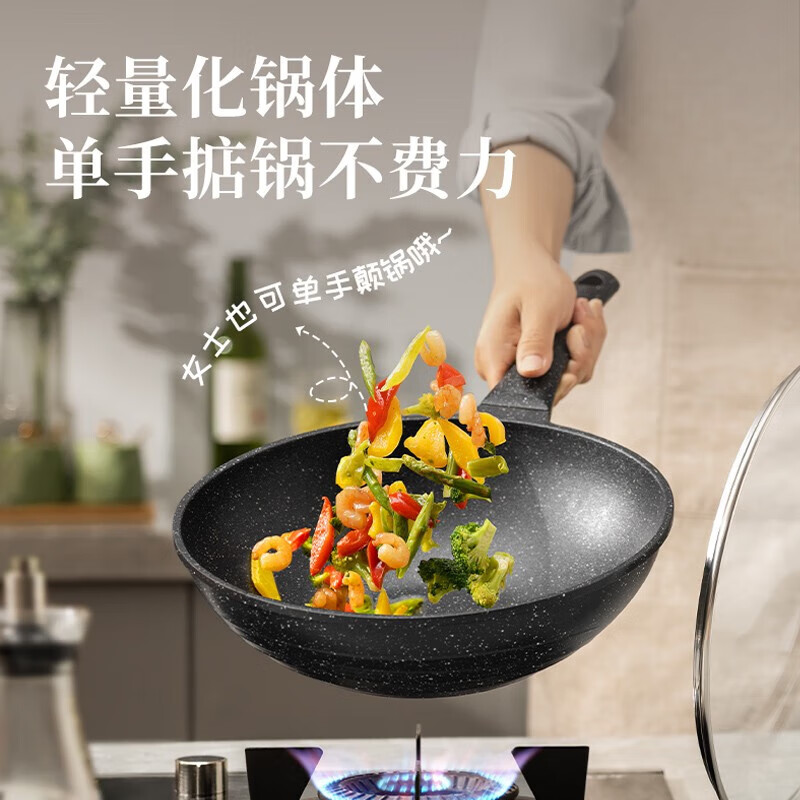 美 炒锅电磁炉不粘锅煎锅燃气燃气灶煤气灶通用家用炒菜锅平底锅