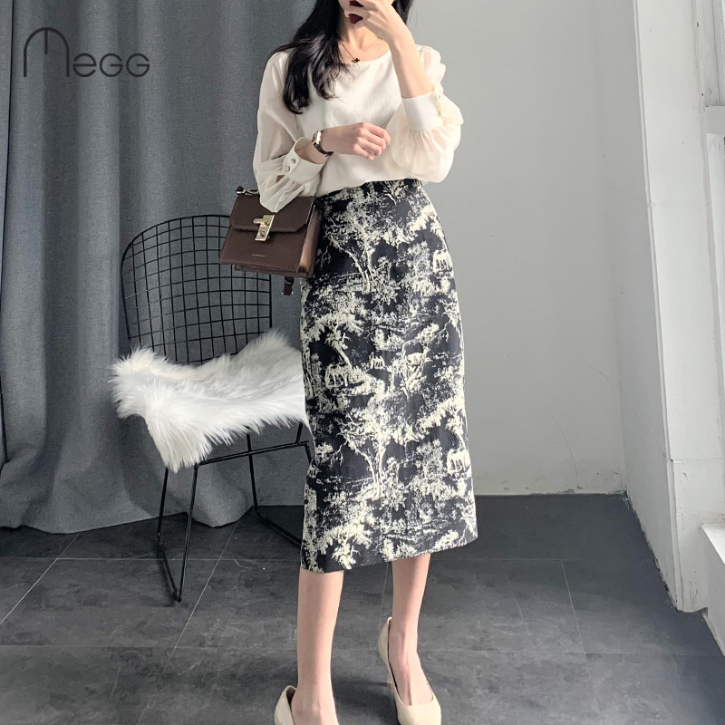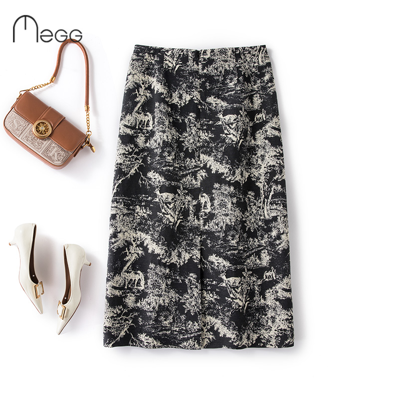 desire后中开叉连腰直筒半身裙2025秋季 orange 新款 焦糖饼干