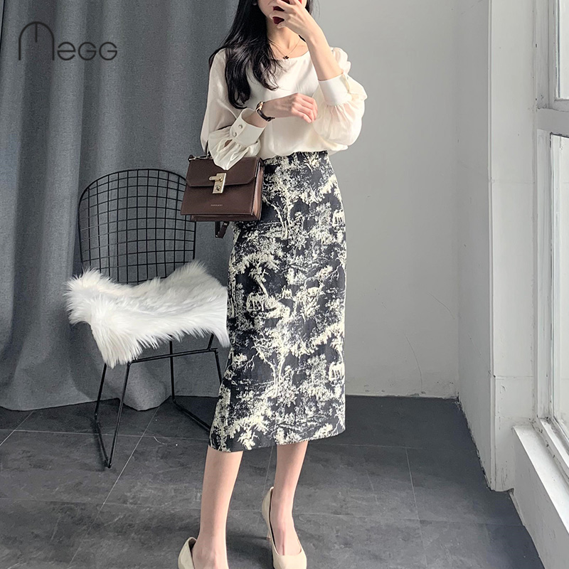 紫涵拼接花苞型半身裙女秋季 高腰显瘦休闲通勤百搭宽松中长裙 新款
