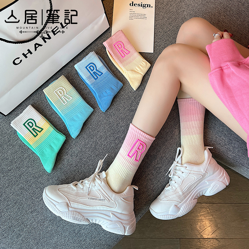 袜子女中筒袜春秋棉袜无骨ins潮网红款 超火高腰百搭长袜 配鲨鱼裤