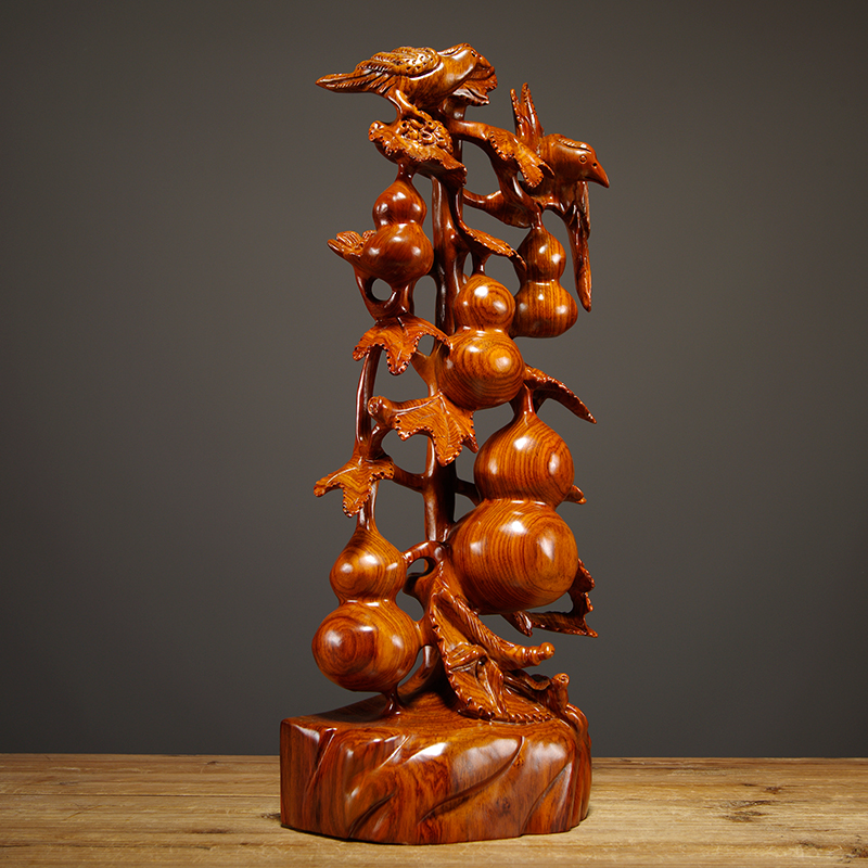花梨木雕五福临门葫芦摆件实木家居客厅玄关酒柜电视柜红木工艺品