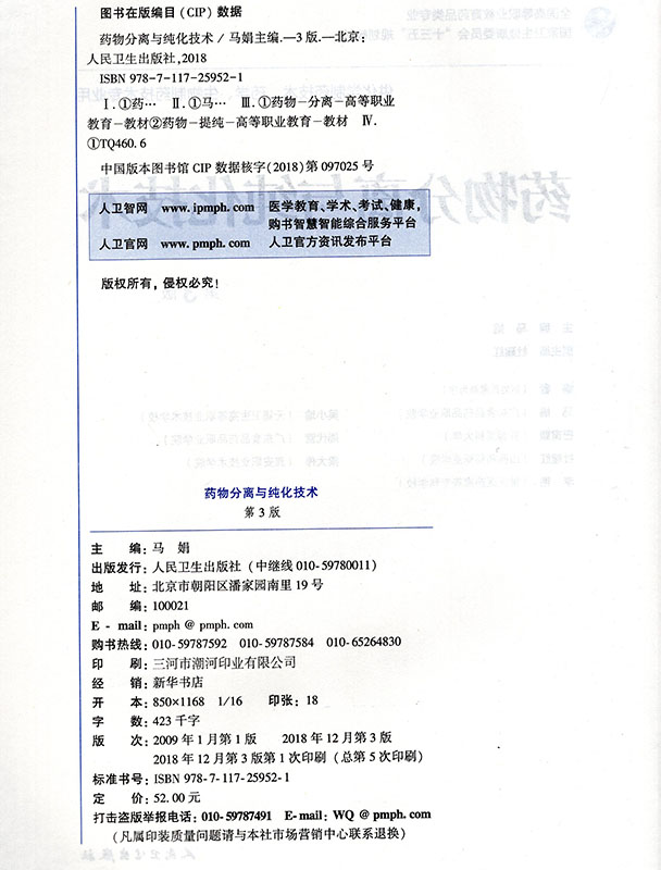 三 第3版 高等职业教育药品类专业 卫生健康委员会 供化学制药技术药学等专业用 全新正版 十三五规划教材 药物分离与纯化技术