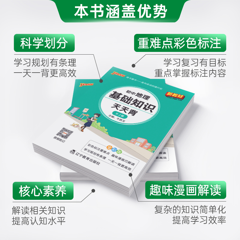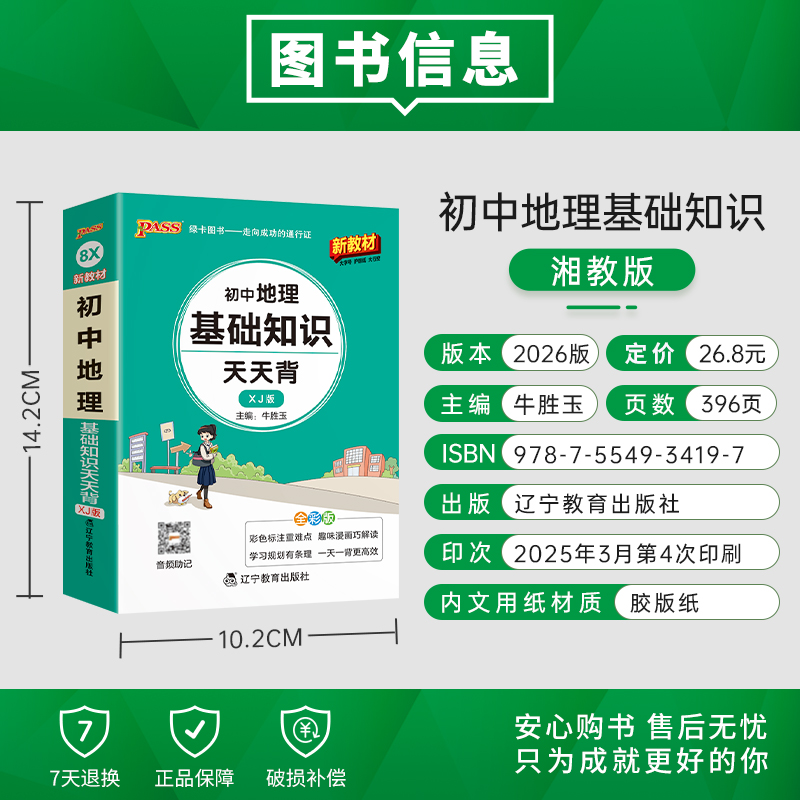 湘教版 初中地理基础知识天天背七年级八年级知识点手册会考复习资料掌中宝口袋书pass绿卡图书初一初二小中考复习工具书 2026新版