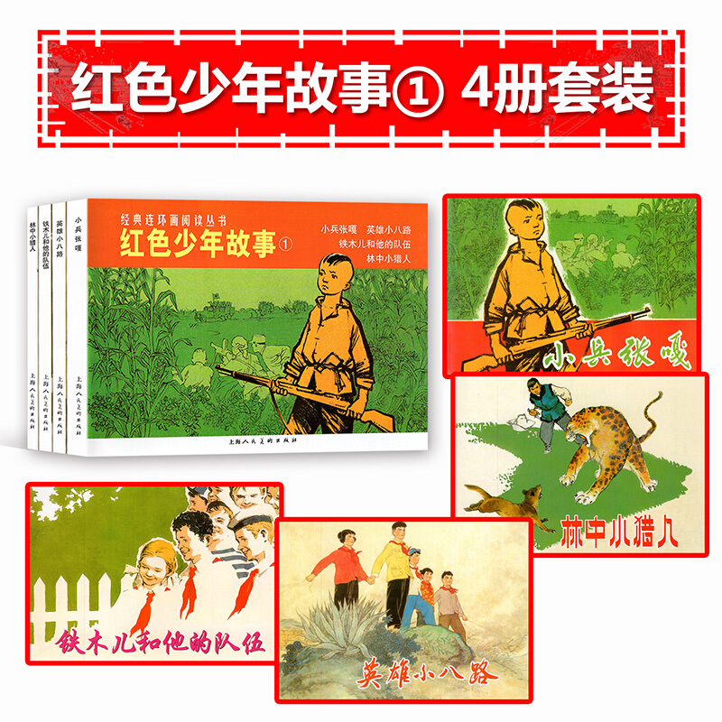 队伍 社 上海人民美术出版 共4册 林中小猎人 铁木儿和他 英雄小八路 小兵张嘎 连环画阅读丛书 经典