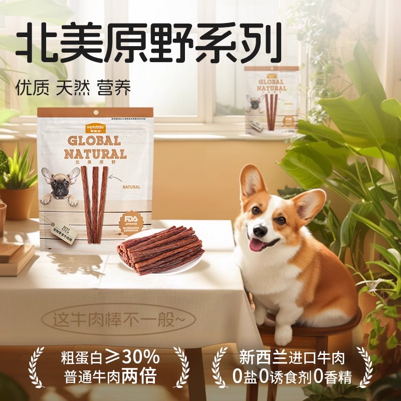 麦富迪牛肉棒狗狗零食柴犬泰迪幼犬宠物牛肉条粒磨牙棒北美原野