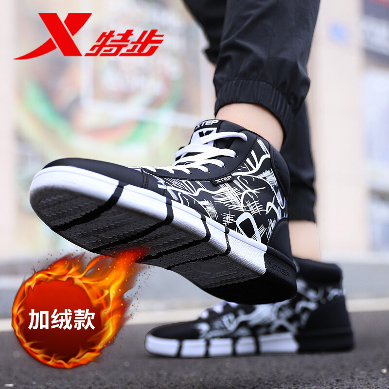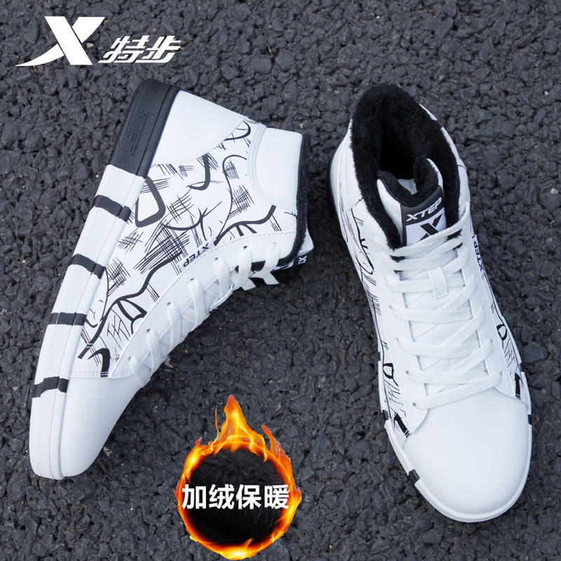 冬季 2025新款 鞋 子青少年加绒保暖高邦运动鞋 特步板鞋 棉鞋 高帮男鞋