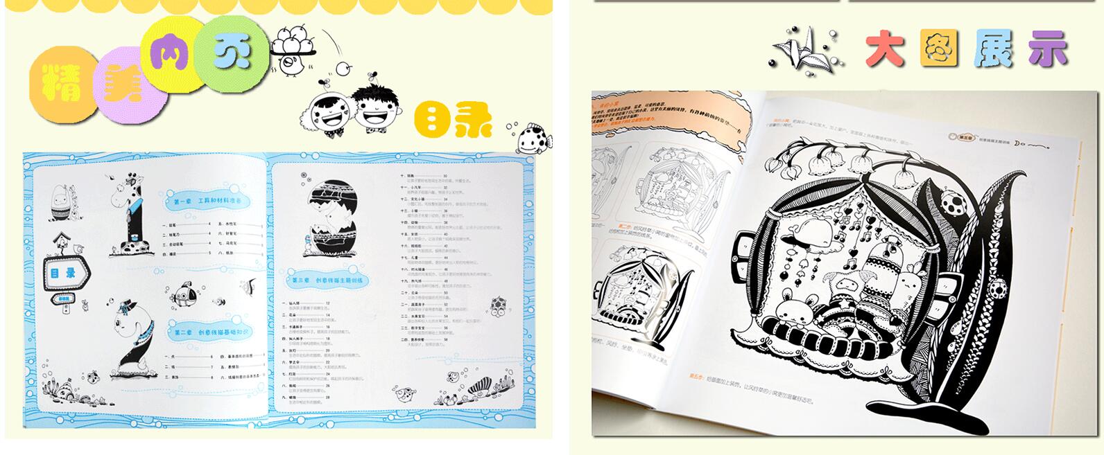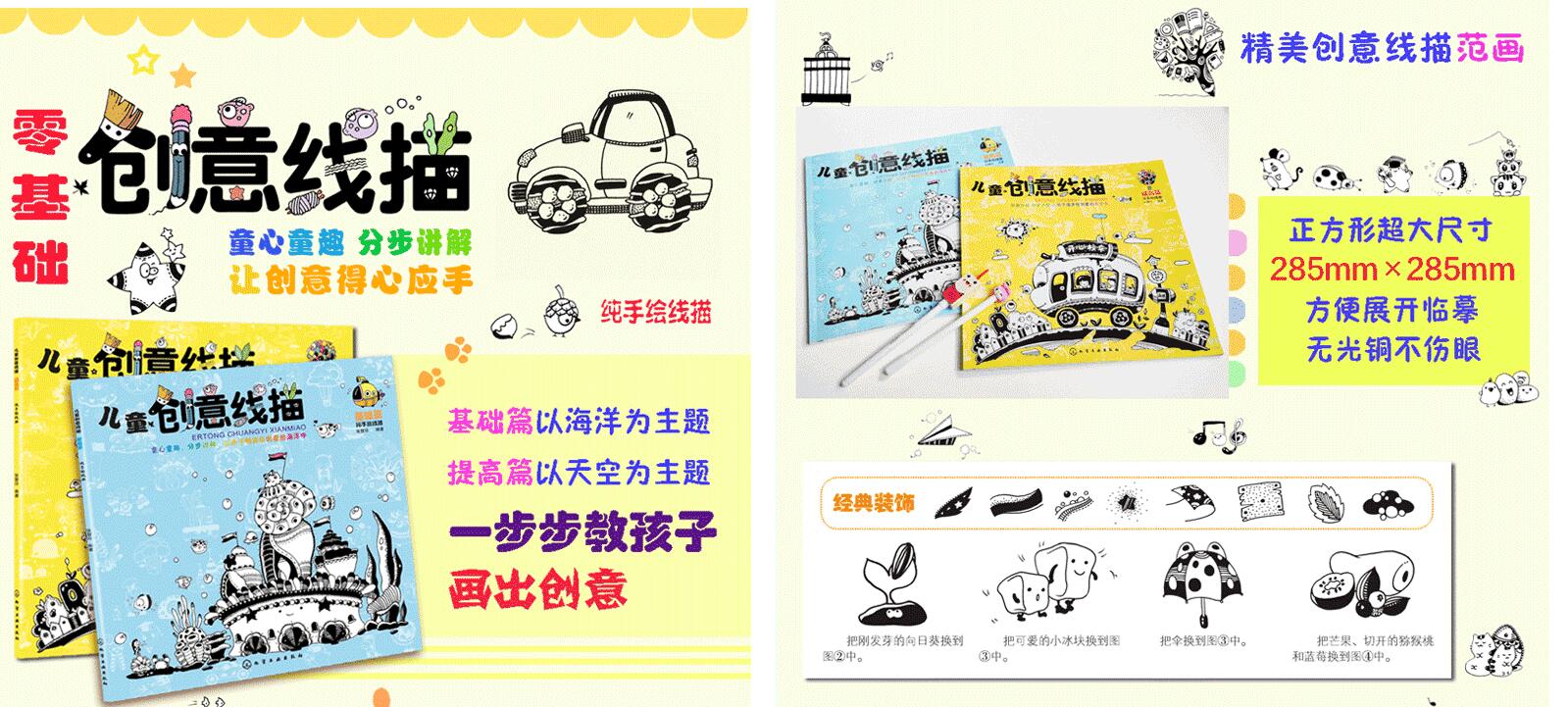 儿童创意线描.基础篇 儿童线描画创意美术 提高篇 少儿美术培训教材学画画书入门幼儿童绘画 儿童绘画线描教程 线描画课堂 全2册