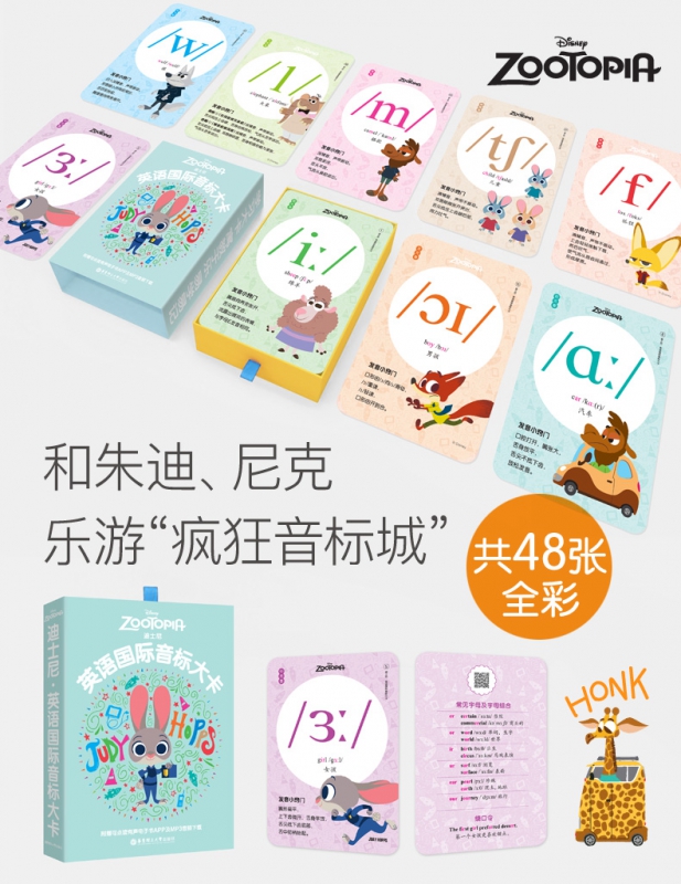 疯狂动物城 迪士尼英语国际音标大卡 儿童启蒙彩图音标点读教材 小学音标卡片入门英语学习正版 正版 儿童英语启蒙书 有声音标
