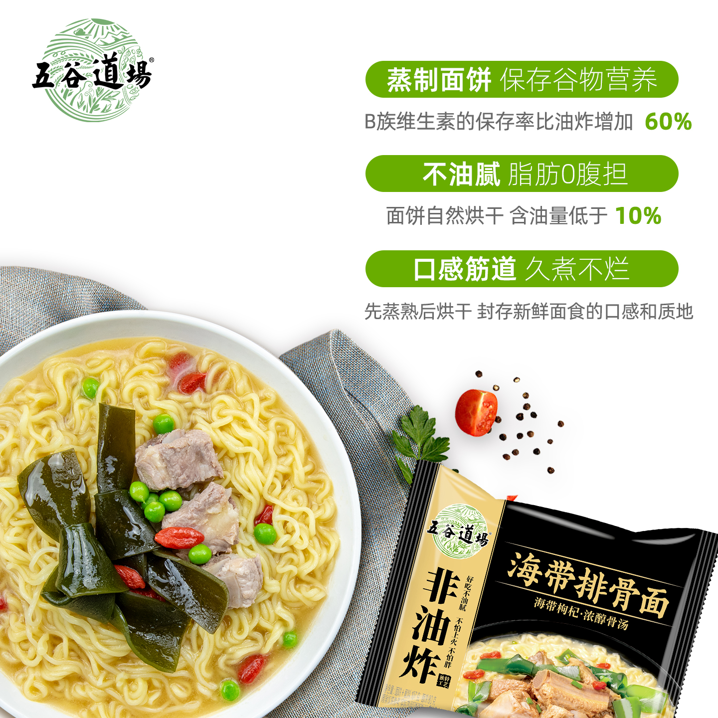 五谷道场非油炸方便面袋装 海带排骨早餐面食速食夜宵泡面整箱批发